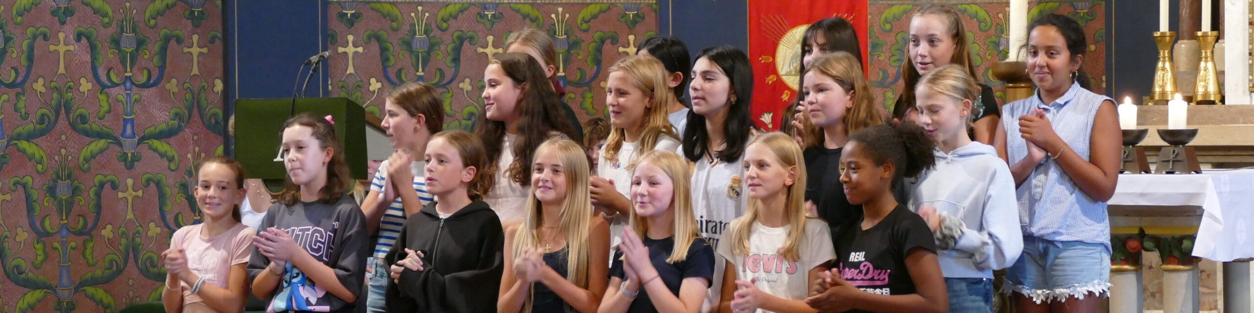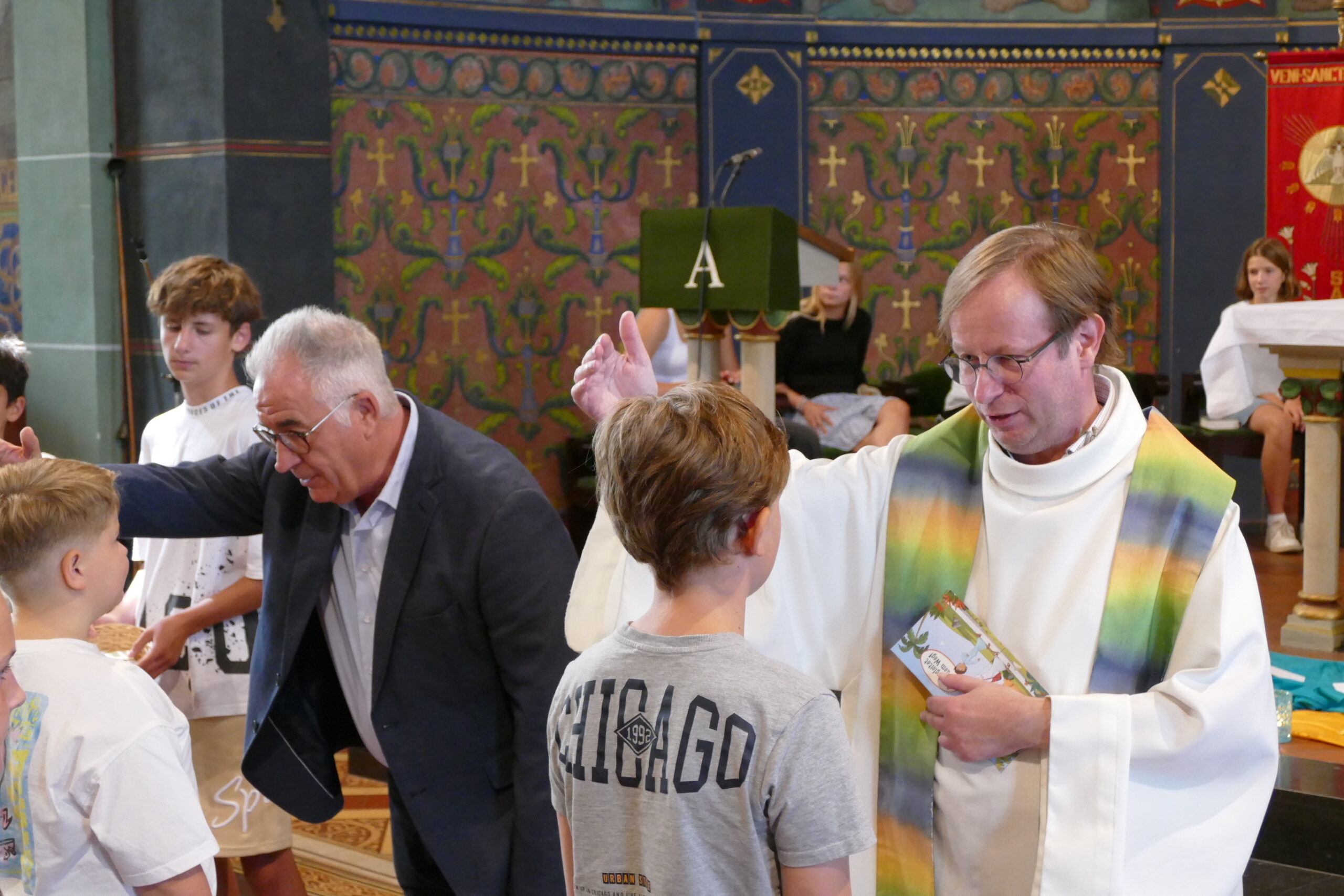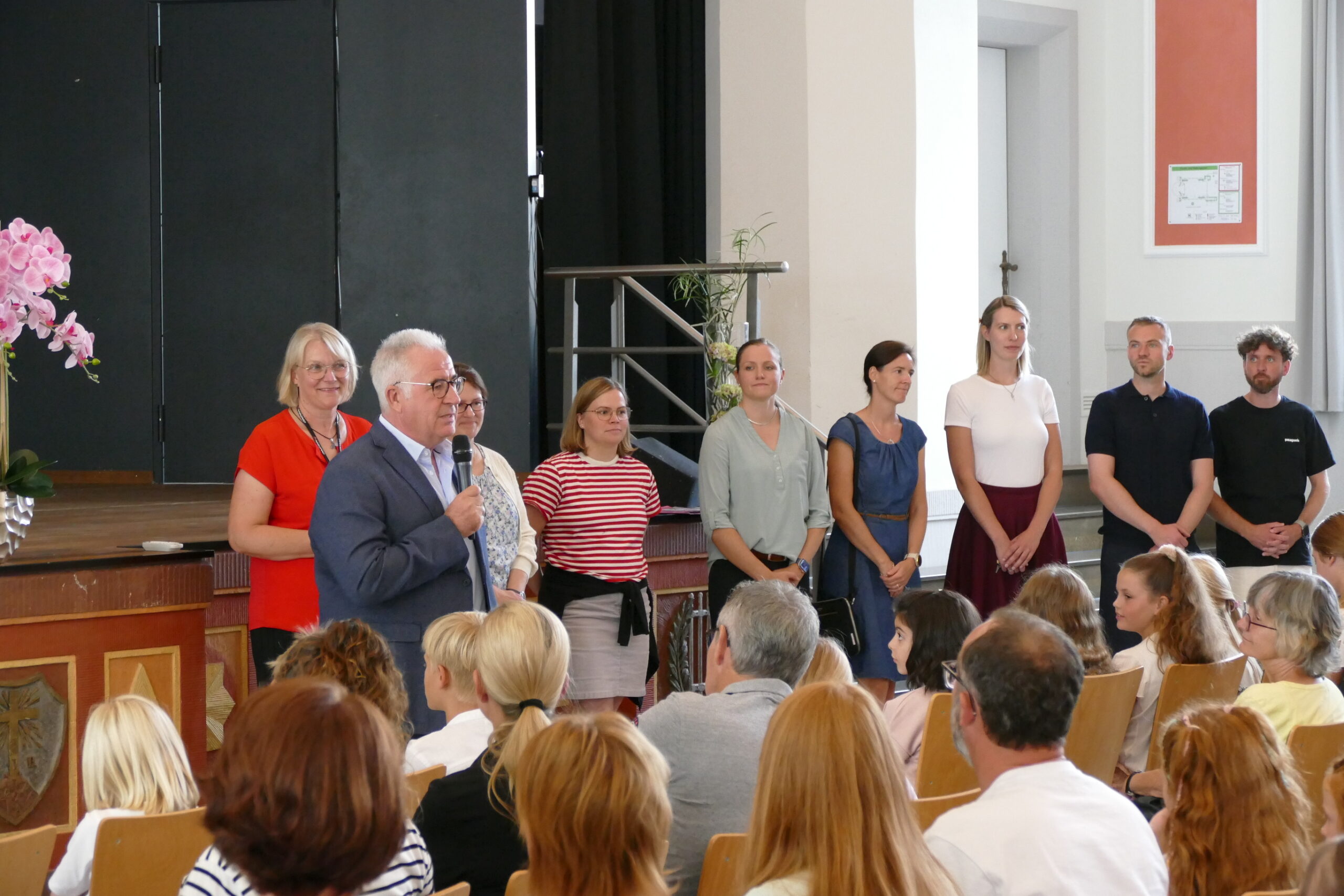 Die Aufregung war deutlich zu spüren, als die neuen Xaverianerinnen und Xaverianer gemeinsam mit ihren Eltern und teilweise Geschwistern am Nachmittag des ersten Schultages in ihre neue Schule kamen. Die Einschulungsfeier begann mit einem gemeinsamen Wortgottesdienst in der Schulkirche, den Schulseelsorger Maurinus Niedzwetzki unter das Motto „Gott begleitet auf dem Weg“ stellte. Ausgehend von der biblischen Geschichte von Tobias und seinem Wegbegleiter, dem Schutzengel Rafael, gab Maurinus Niedzwetzki den neuen Schülerinnen und Schülern mit auf den Weg, dass Gott auch auf ihrem Weg bei ihnen sein will und ihnen Wegbegleiter an die Seite stellt. Er ermutigte aber auch dazu, selbst in die Rolle von Wegbegleitern für die neuen Mitschülerinnen und -schüler zu schlüpfen, denn nur so kann eine starke Gemeinschaft entstehen.