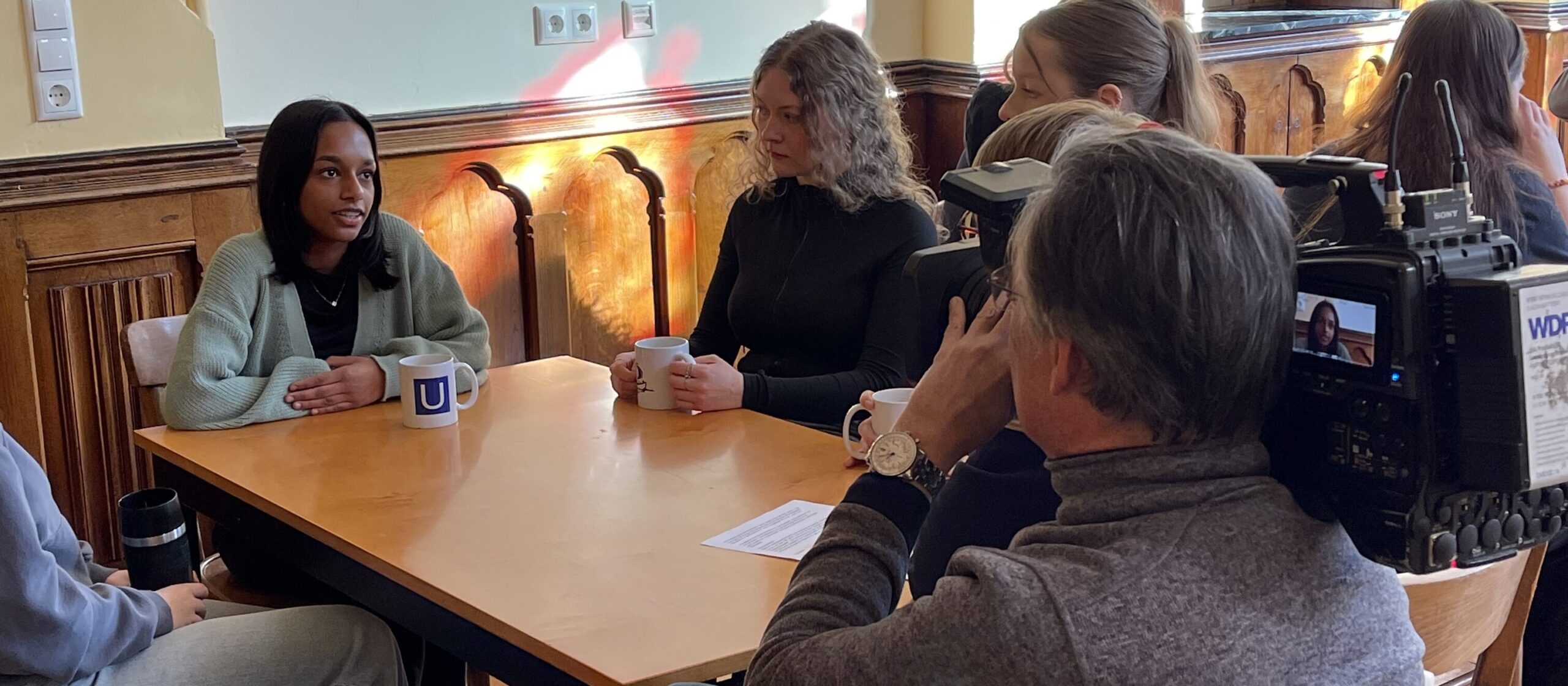 Der Drehtag in unserer Schule beinhaltete vor allem ein Interview mit Schülerinnen und Schülern der Oberstufe, die über Hedwig Dransfeld und Frauenrechte in der heutigen Zeit aus ihrer Sicht berichten konnten.
