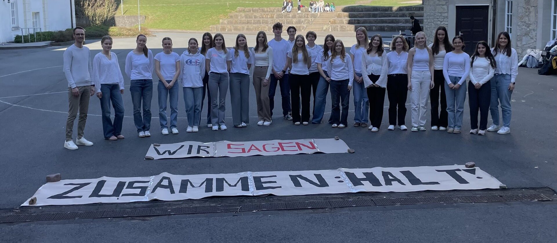 Besonders beeindruckend sind die Bilder, die unter anderem von Schüler Luca Leiweke mit seiner Drohne eingefangen wurden – sie zeigen, wie stark und geschlossen das Gymnasium St. Xaver für Frieden und Mitmenschlichkeit eintritt.