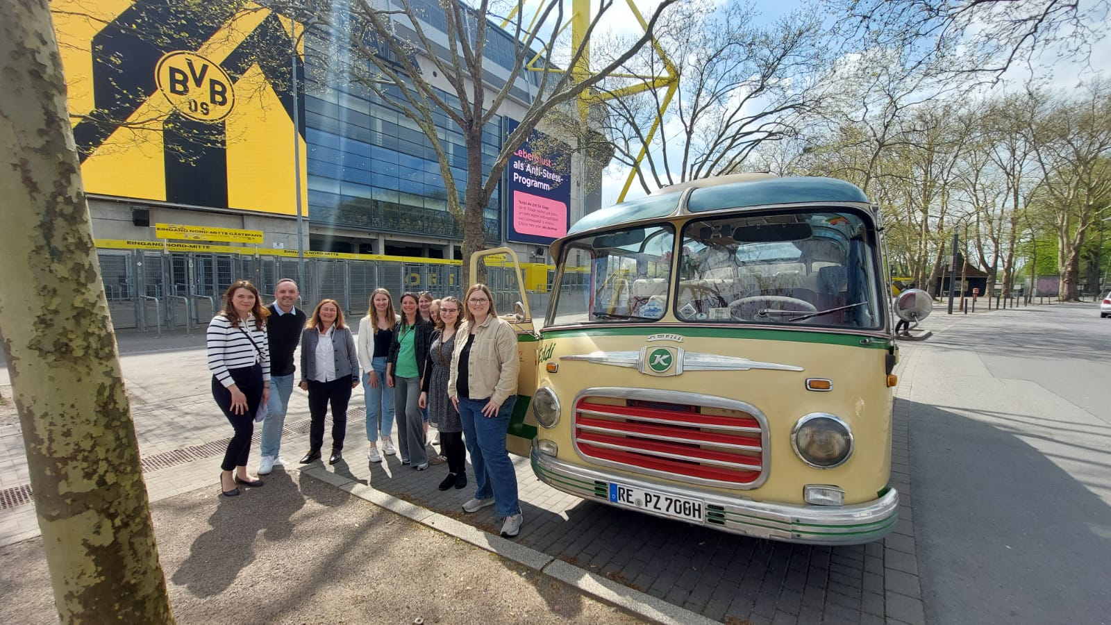 Die Feier begann mit einer 90-minütigen Tour durch Dortmund in einem Oldtimer-Bus namens Eddi, der die Gruppe an den markantesten Sehenswürdigkeiten vorbeiführte. Das Team des Mentorats Dortmund erklärte und erläuterte die von Industrie- und Fußballkultur geprägte Stadt Dortmund. Anschließend trafen sich die Teilnehmenden in der Katholischen Hochschulgemeinde, um auf ihre Zeit im Mentorat zurückzublicken. Dabei wurden Highlights aus der Studienzeit genannt und auch Fragen rund um das bald anstehende Referendariat gestellt.