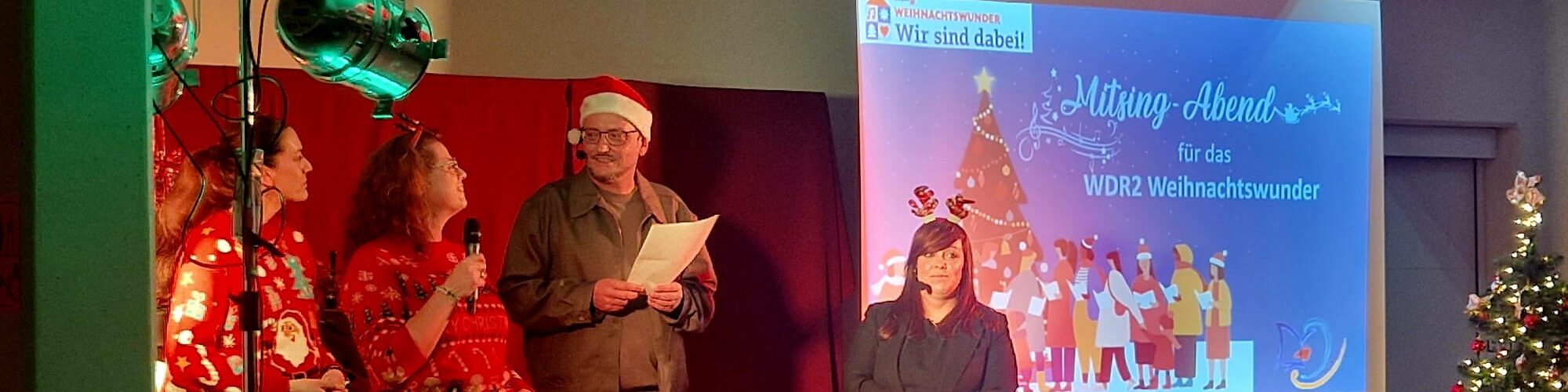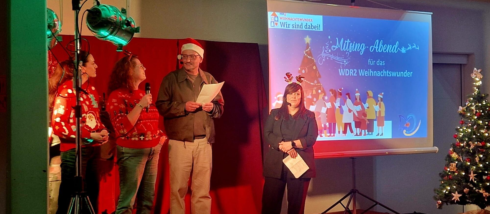 Im Rahmen eines Mitsing-Abends am 15.12.2025 mit Unterstützung des Gospelchores „Living Voices“ kamen insgesamt 5.252,52 Euro an Spenden für das WDR 2 Weihnachtswunder zusammen.