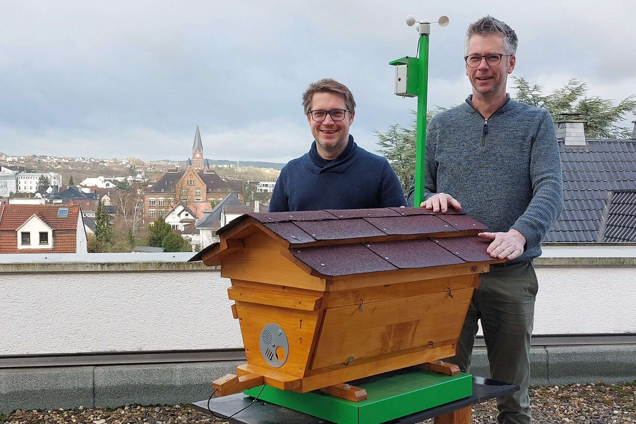 Das aktuellste Teilprojekt von Mensch.Natur.Biene am St.-Ursula-Gymnasium in Neheim ist ein digitaler Bienenstock, der mit einer digitalen Waage, Temperaturfühlern sowie Webcams ausgestattet ist und für jeden einsehbar die Daten überträgt. „Dies ermöglicht es den Jugendlichen, den Bienenstaat näher zu erforschen, und als Lehrer können wir die Biene noch besser in den Unterricht einbinden“, erläutert Dr. Bette.