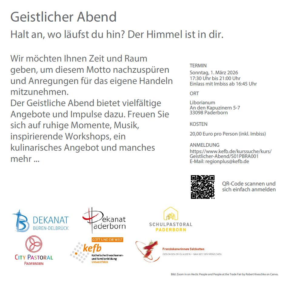 Wir möchten Ihnen Zeit und Raum geben, um diesem Motto nachzuspüren und Anregungen für das eigene Handeln mitzunehmen.